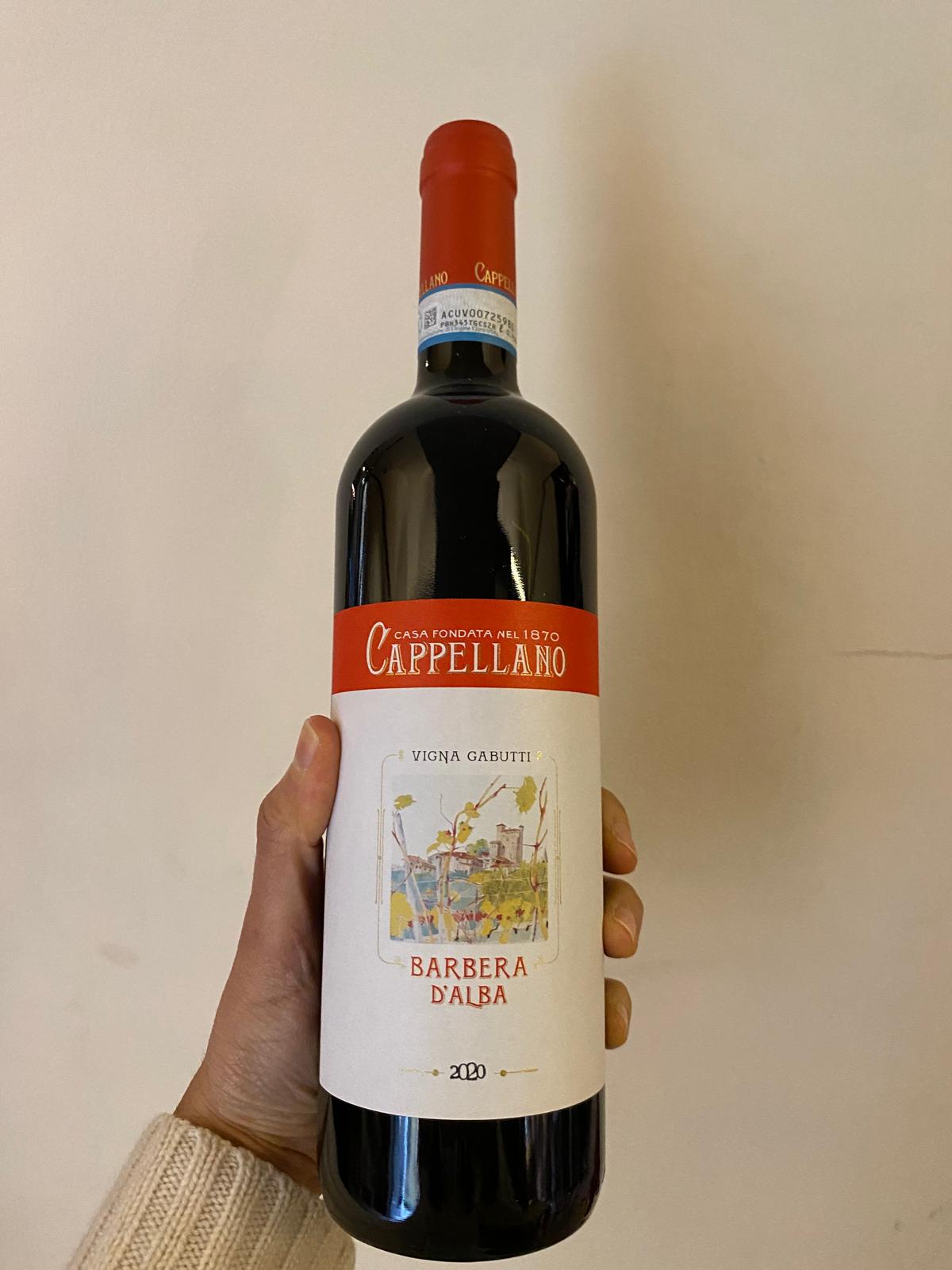 La Barbera d'Alba Gabutti 2020 di Cappellano nasce da uve coltivate nel Comune di Serralunga d'Alba. Le uve raccolte a fine settembre vengono selezionate; la vinificazione prevede una fermentazione tradizionale di 12/14 giorni. Il vino viene successivamente affinato in botti di rovere di media capacità per alcuni mesi a seconda dell’annata. Una Barbera classica, contraddistinta da una incredibile eleganza e, al contempo, una potenza senza eguali. Questo vino trova la sua cifra distintiva in un’acidità spiccata che sorregge morbidezze e frutto e rende vibrante il quadro gustativo fino al lungo finale.